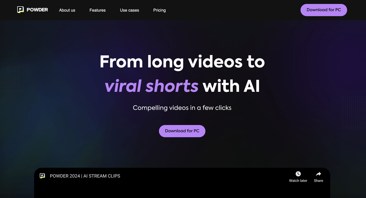 Powder è un'altra alternativa a StreamLadder. È progettato per aiutare gli utenti a catturare, modificare e condividere facilmente i punti salienti dei video dalle loro sessioni di gioco. Utilizzando un'intelligenza artificiale all'avanguardia, Powder rileva e ritaglia automaticamente i momenti chiave, rendendo facile creare contenuti coinvolgenti senza la necessità di modifiche manuali.