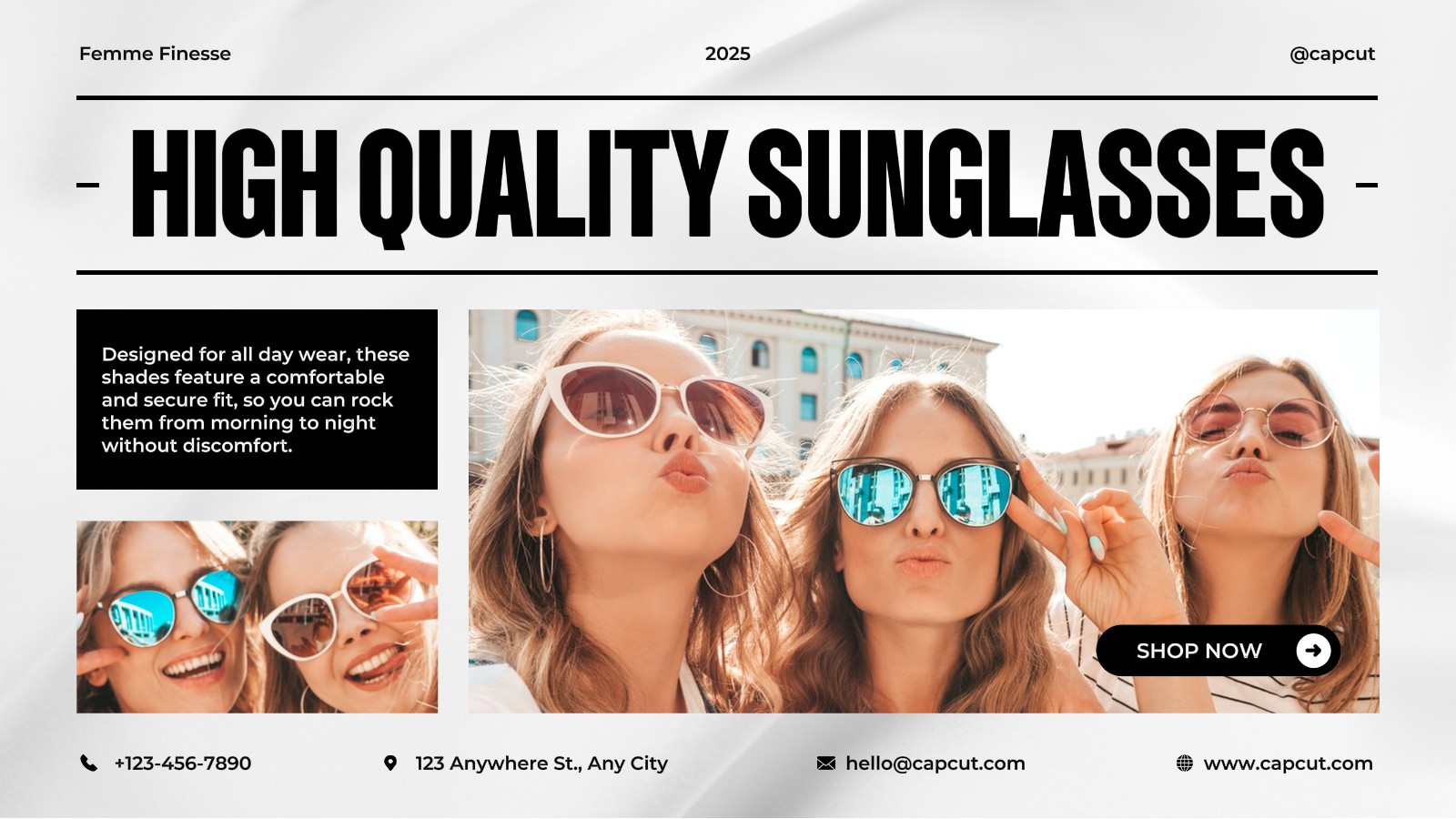 プロ仕様の2022年サングラス動画テンプレートで、あなたのコレクションをSNSで輝かせましょう。競争が激しいアパレル・アクセサリー業界で差をつけるには、魅力的で高品質なコンテンツが不可欠。CapCutのテンプレートはただの出発点ではなく、注目度抜群の動画を素早く作れる最短ルートです。すべてのデザインはロゴ追加や色変更、商品写真もドラッグ&ドロップで簡単挿入。InstagramリールやTikTok広告のプロモーションにもぴったりな、エネルギッシュで洗練された動画を作成。今すぐテンプレートをチェックして、あなたのブランドを格上げする最適な1本を見つけましょう。