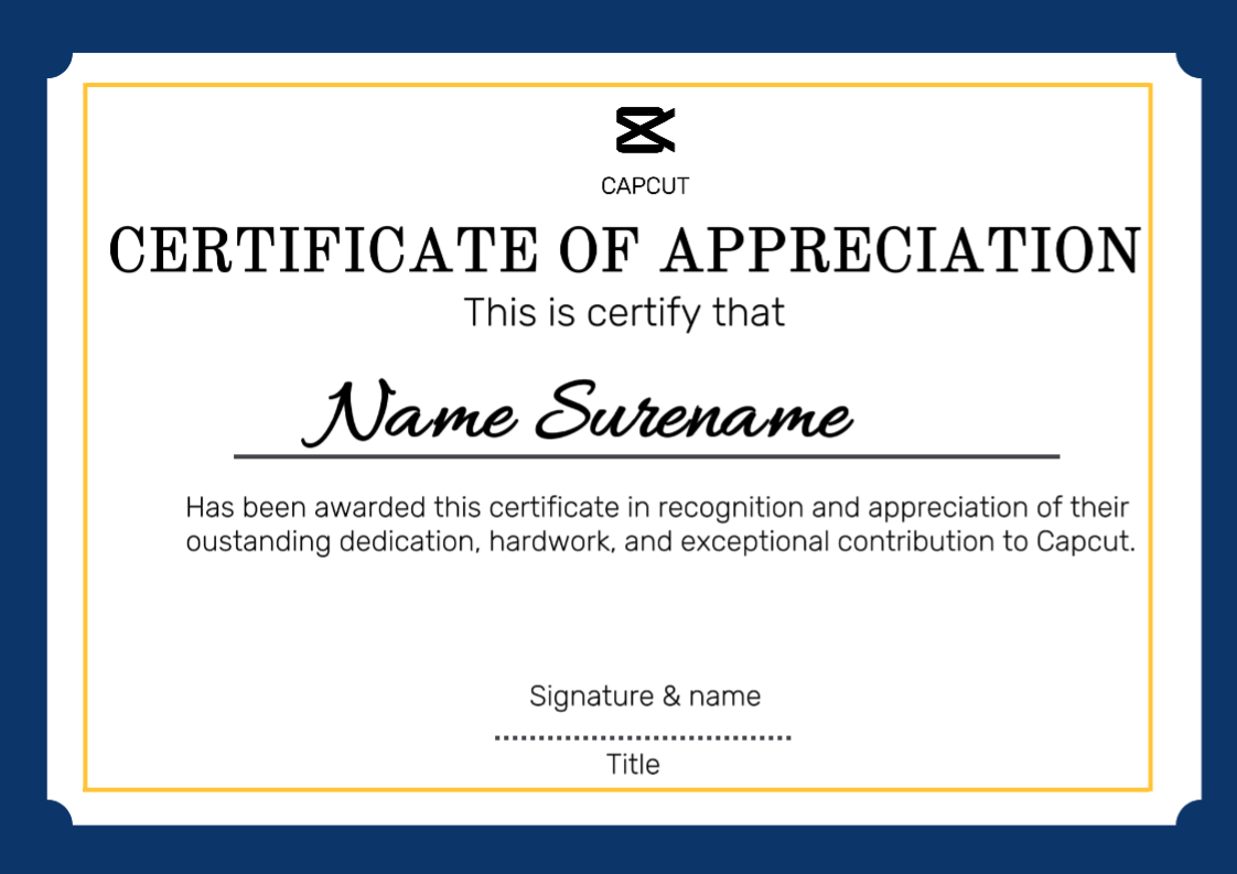 NON-MARKETING CERTIFICATE OF APPRECIATION background navy
