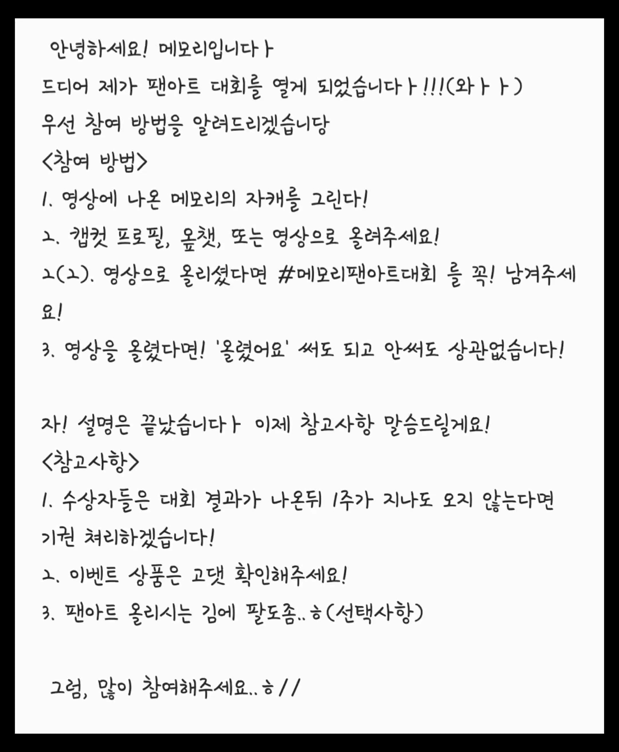 팬아트 대회 열어요오오오오오오
