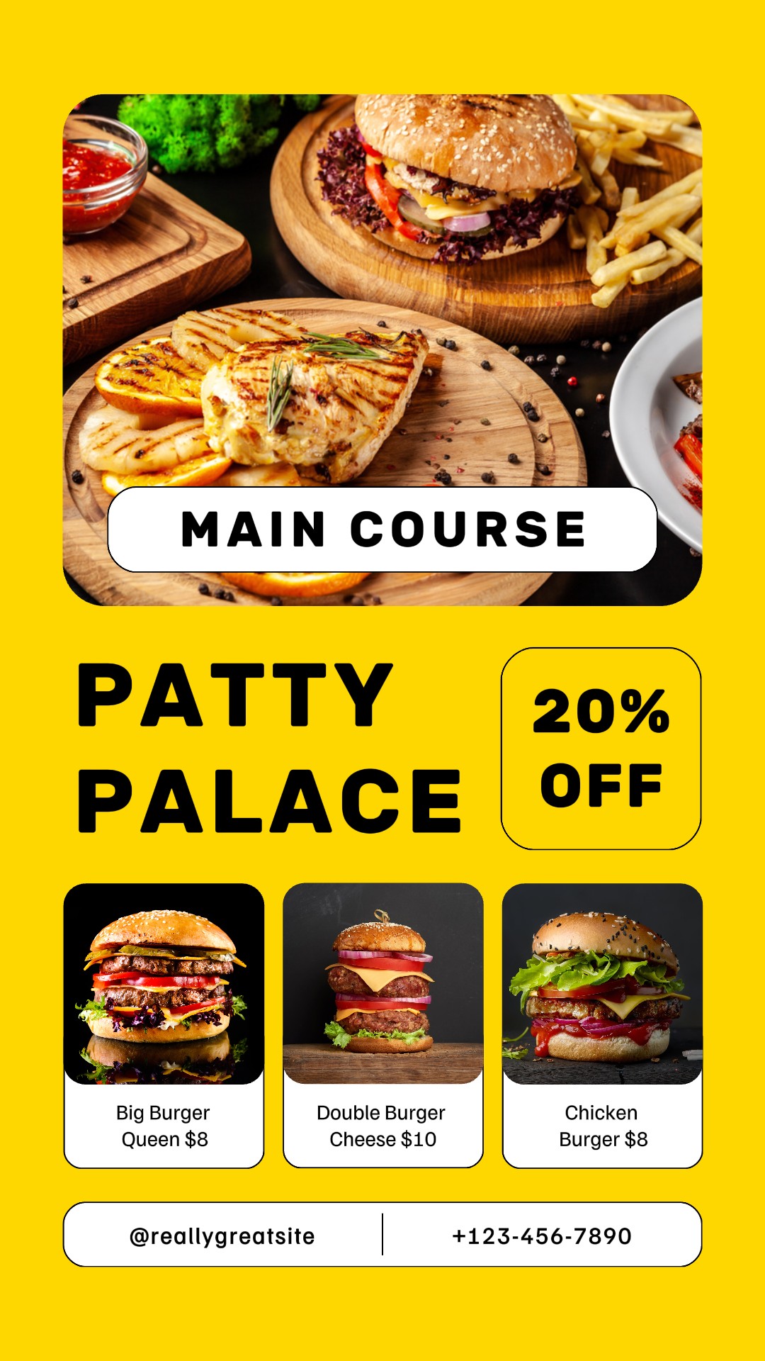 Yellow Minimalist Main Course Burger Restaurant Instagram Story