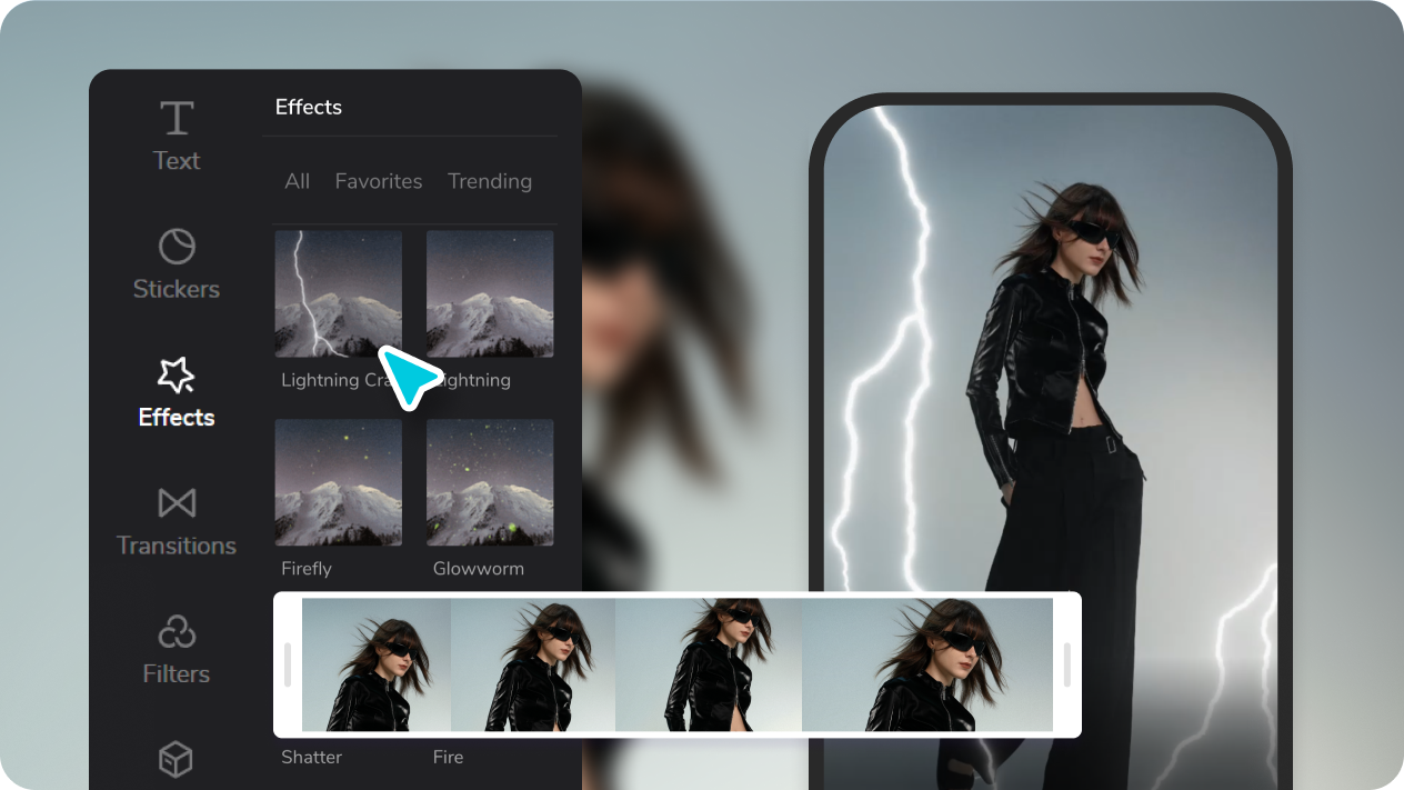 Na het uploaden van je video, verfraai het met een grote verscheidenheid aan stickers, tekst en muziek. Vergeet ook niet gebruik te maken van CapCut's meest opwindende functie: effecten. Deze zullen je inhoud een tandje hoger plaatsen dan de rest.