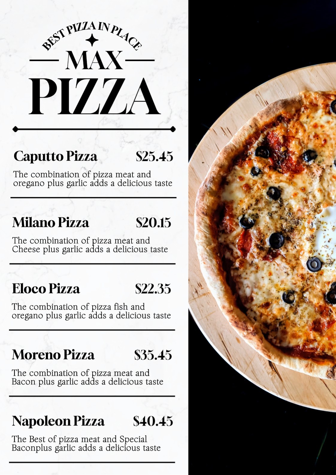 Food Pizza Menu