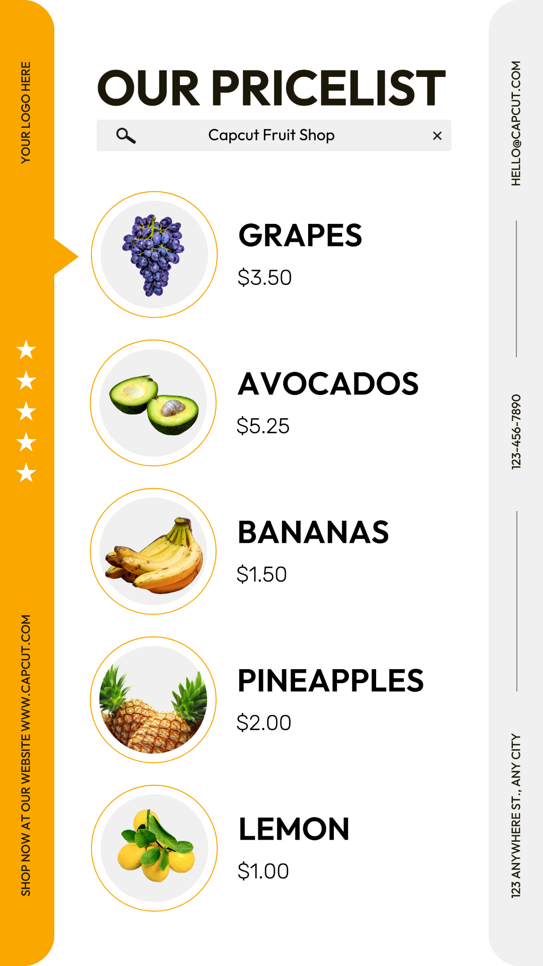 Food & Beverages Fruits Store Pricelist