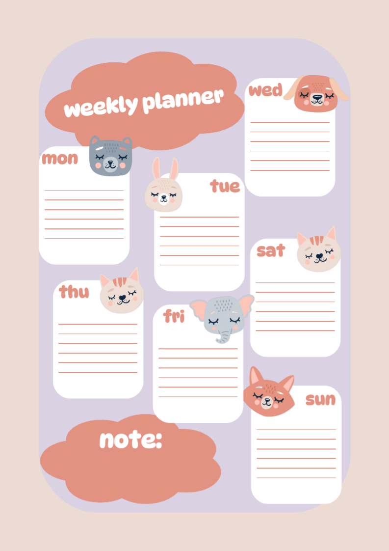Planner and schedule weekly cute animals