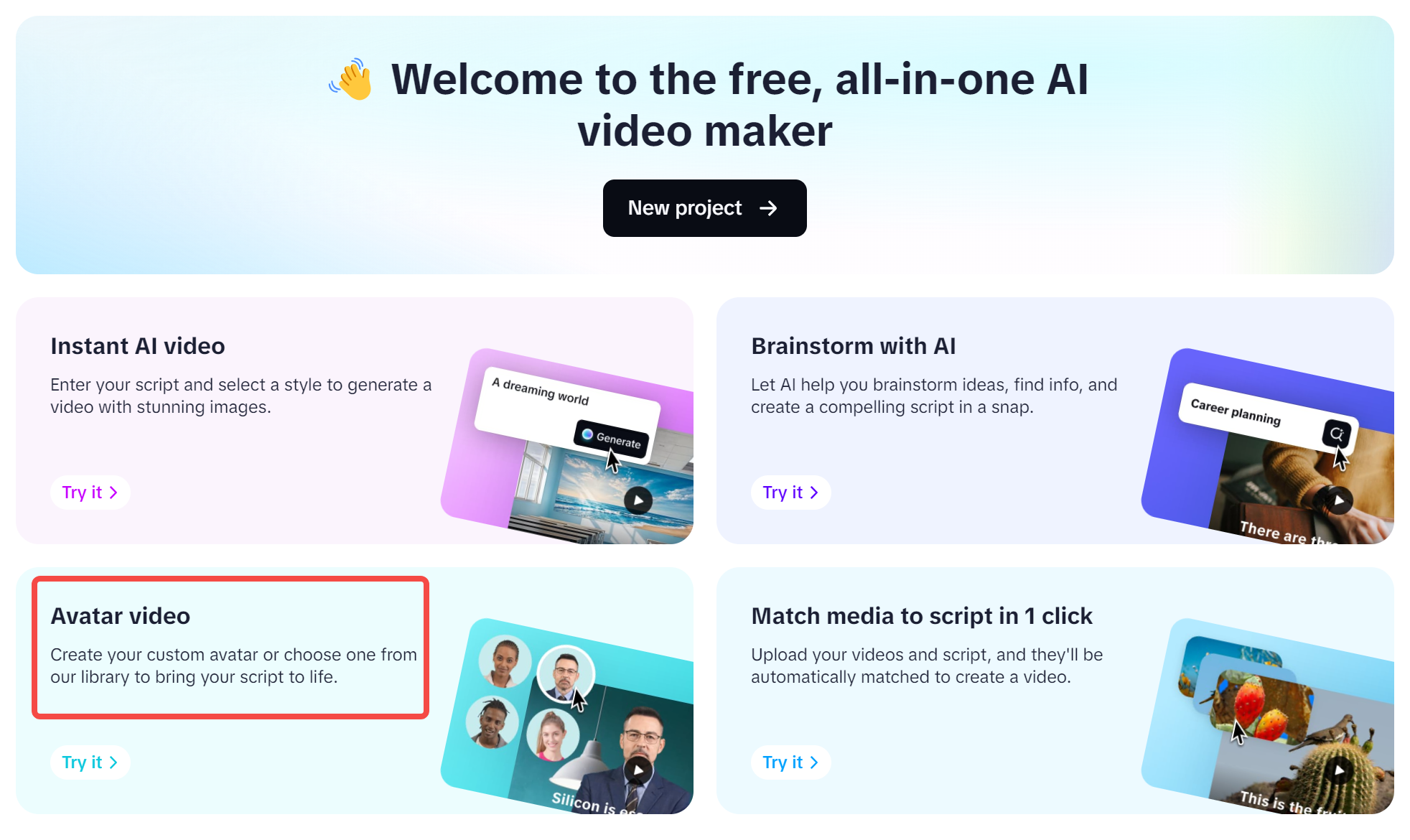 - Acesse o IA criador de vídeo