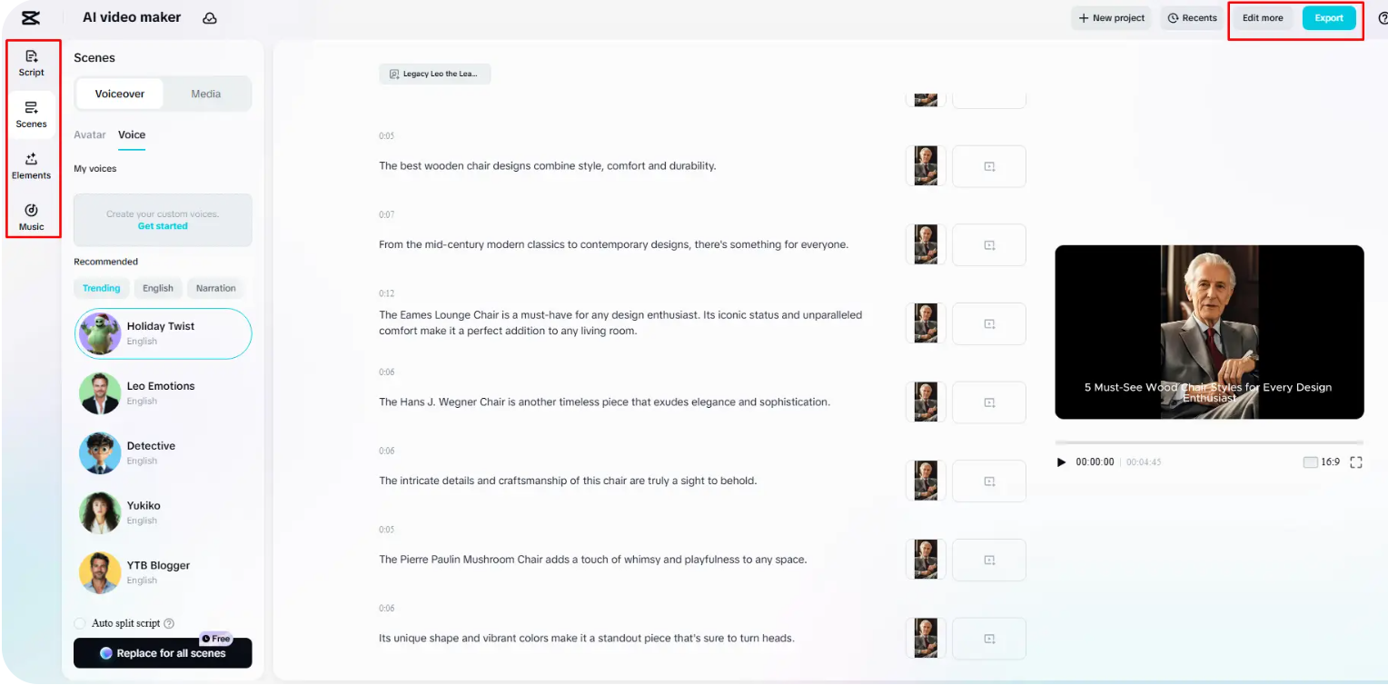 Principais recursos do gerador de vídeo CapCut IA