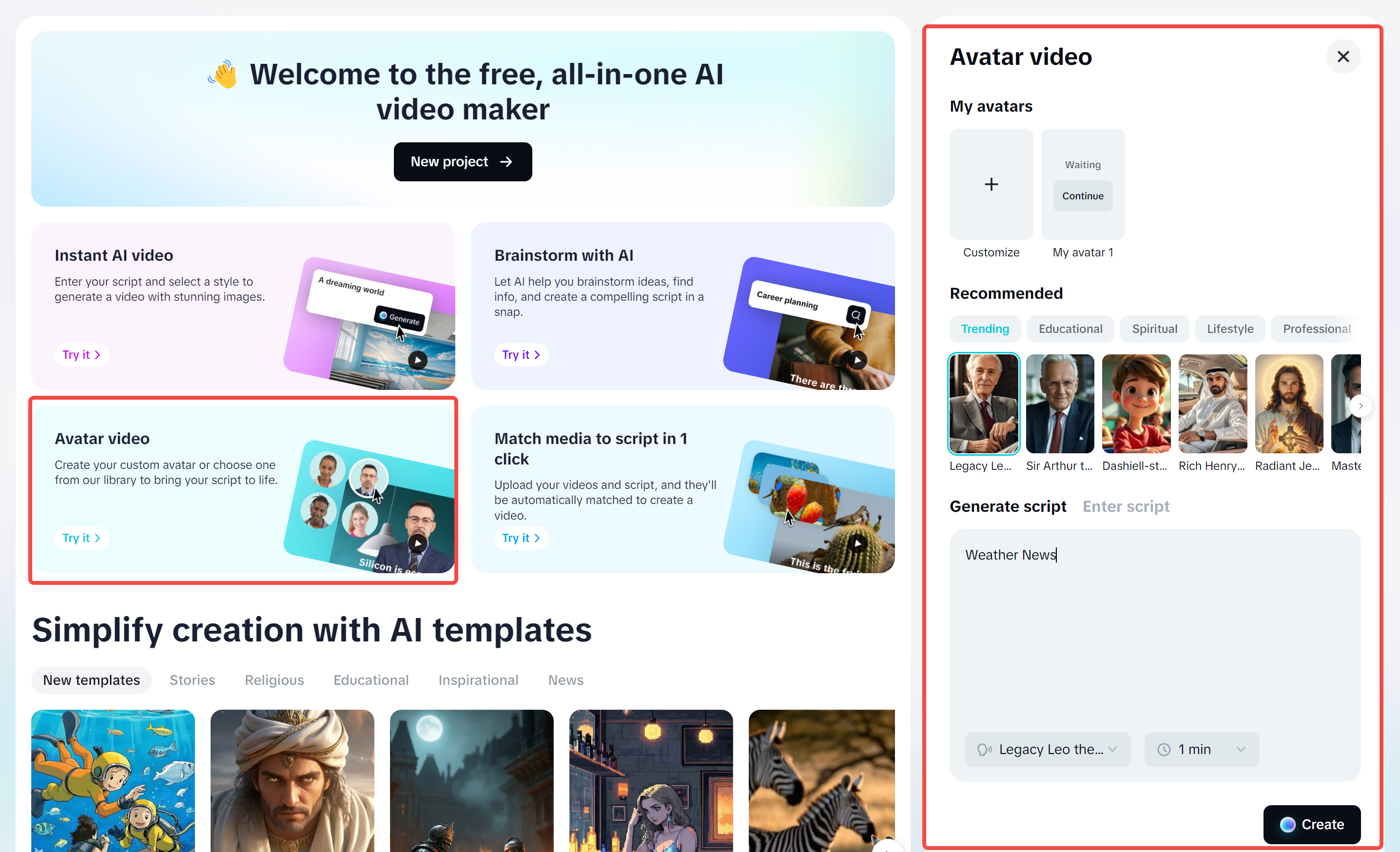 - Abra o IA criador de vídeo