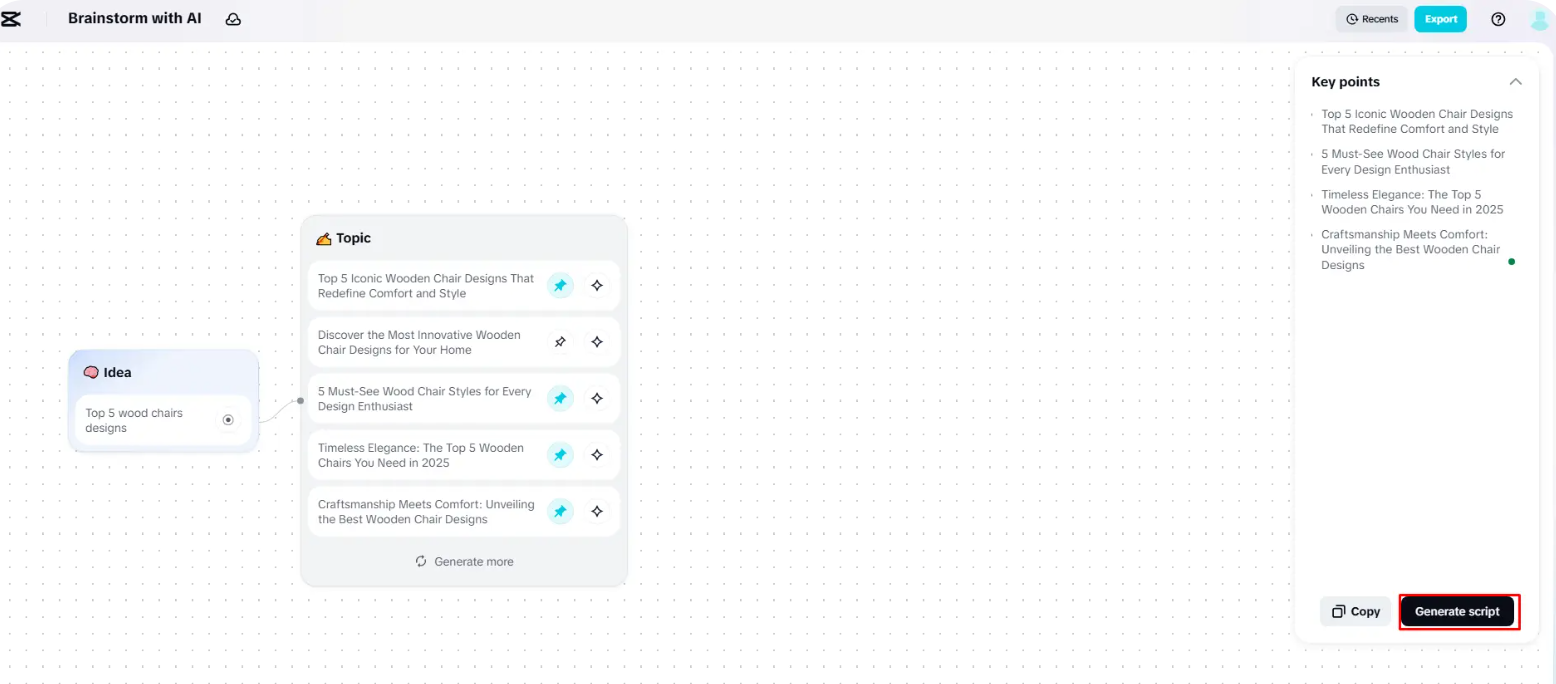 Use o brainstorm do CapCut com a ferramenta Al