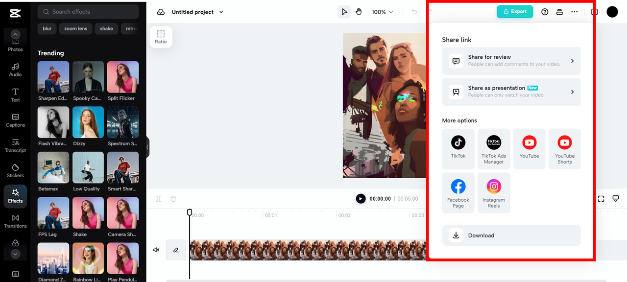 Outros recursos do editor online Capcut para elevar seu mangá