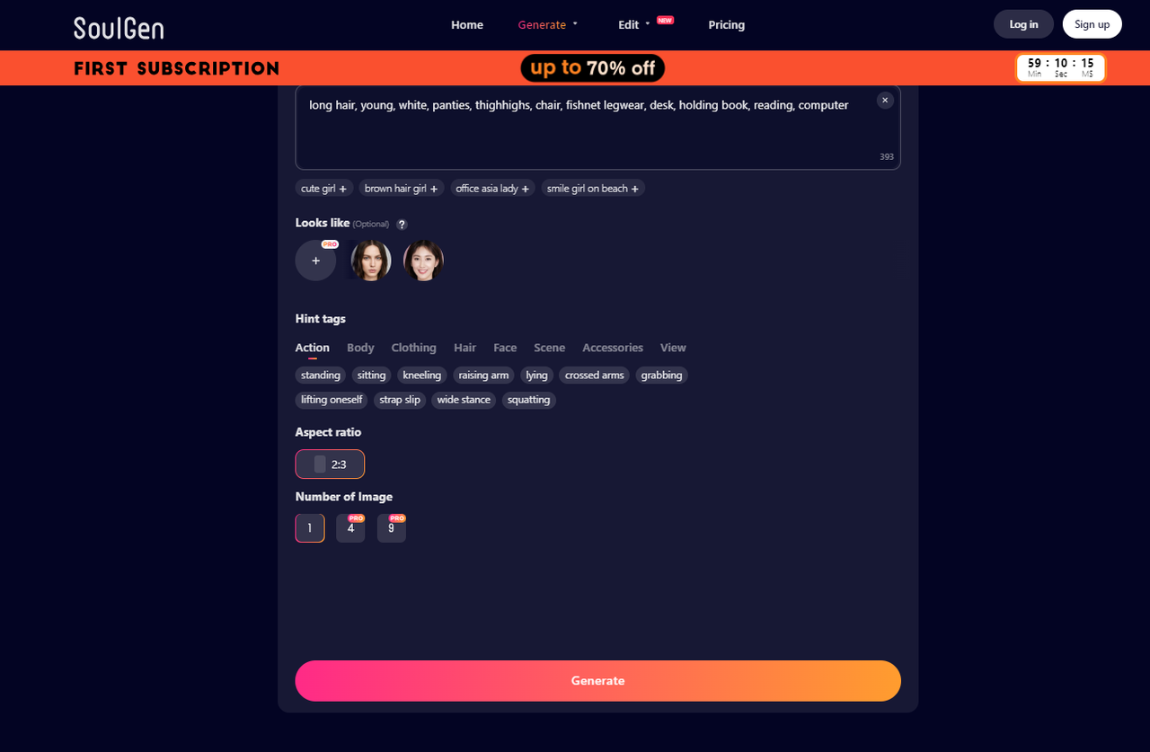 SoulGen é o próximo aplicativo gerador de mangá AI para oferecer recursos alimentados por IA para criar retratos de mangá e converter seu texto em selfies artísticas. O aplicativo apresenta seu mangá gerado por IA em dois estilos diversos, ou seja, estilo da vida real e estilo de anime. Você pode criar retratos de mangá para meninas em poucos cliques. Com sua interface amigável, você pode selecionar as tags que melhor correspondem aos seus prompts de palavras para criar as fotos de mangá mais precisas.