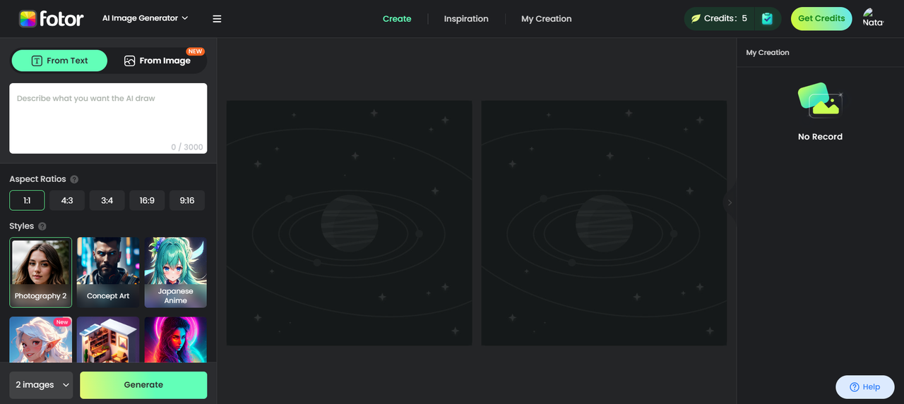 É um gerador de mangá de IA que permite criar selfies de mangá online gratuitamente. Os algoritmos de IA transformam seu texto (prompts de palavras) ou imagens em imagens de IA. Você pode adicionar várias imagens para permitir que as ferramentas de IA analisem as imagens de referência para criar um retrato de mangá semelhante. Também permite personalizar as selfies de arte do mangá adicionando estilos e fundos predefinidos.