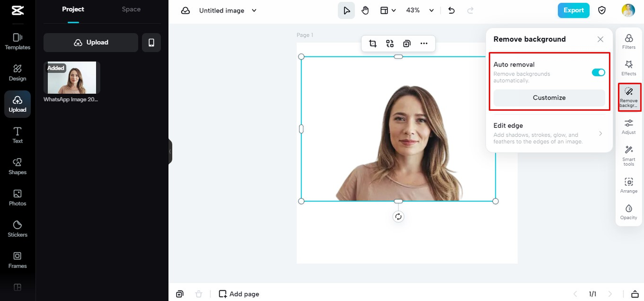 CapCut fornece um extenso conjunto de ferramentas para melhorar o fundo de seus vídeos e imagens. Com o removedor de fundo de imagem, os usuários podem eliminar rapidamente cenas ou objetos indesejados de sua imagem com apenas um clique.