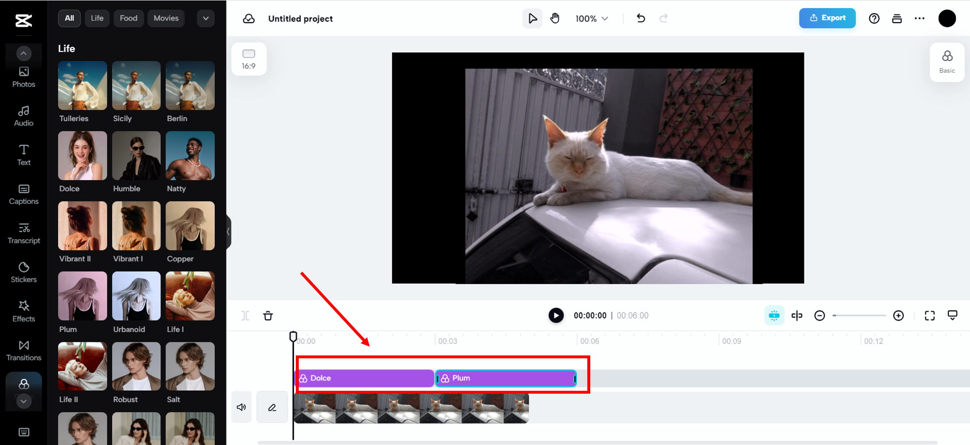 It enables you to cut, trim, speed control, resize, reframe, and stabilize your video, along with adding text, captions, titles, audio, transitions, effects, etc. It also offers eight presets of video filters: Life, Food, Movies, Night Scene, Scenery, Retro, Mono, and Style.