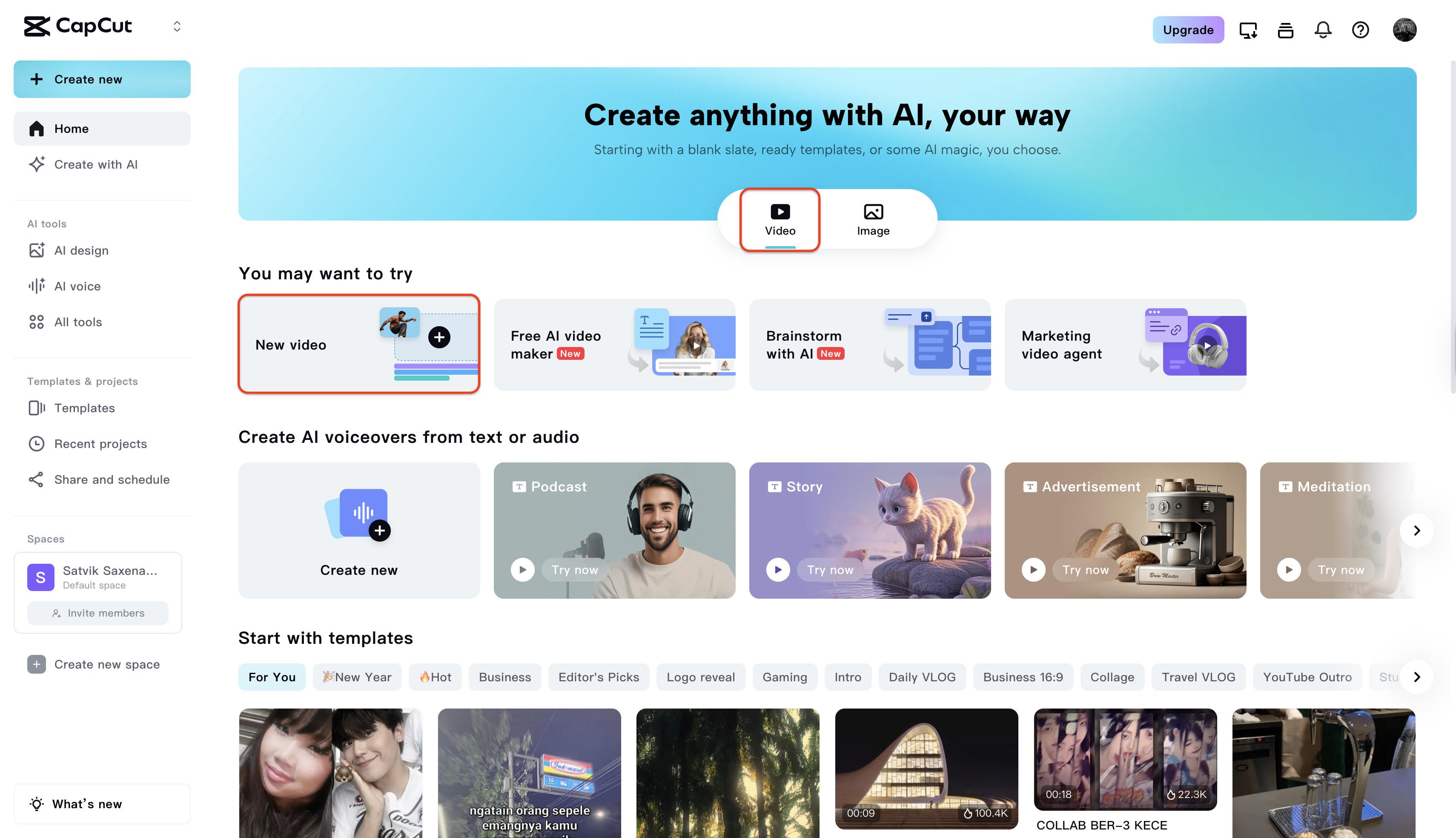 - You can also select the "New video" card under the "You may want to try" section.