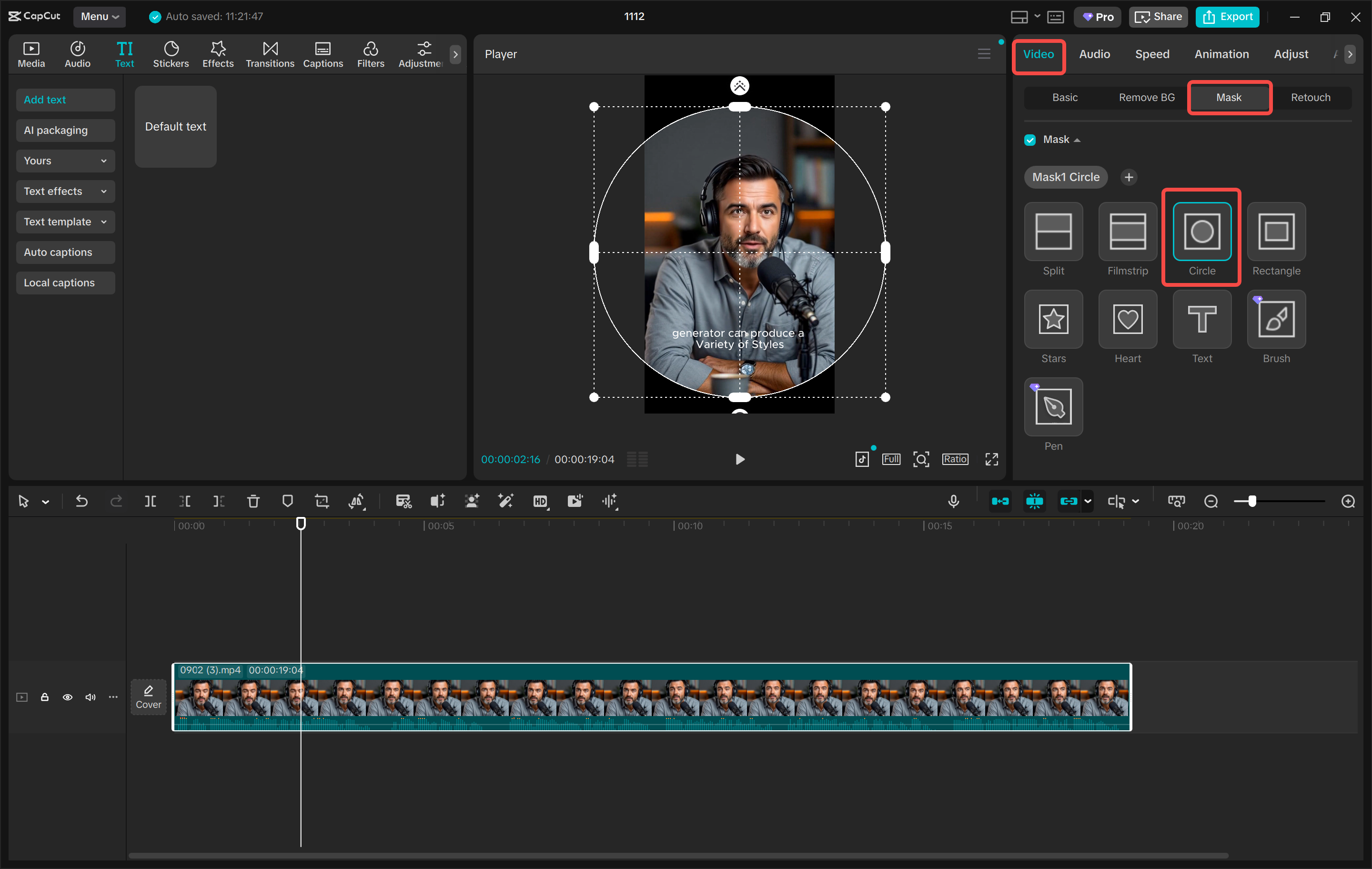 - On the right-hand sidebar, go to "Video" and choose "Mask."