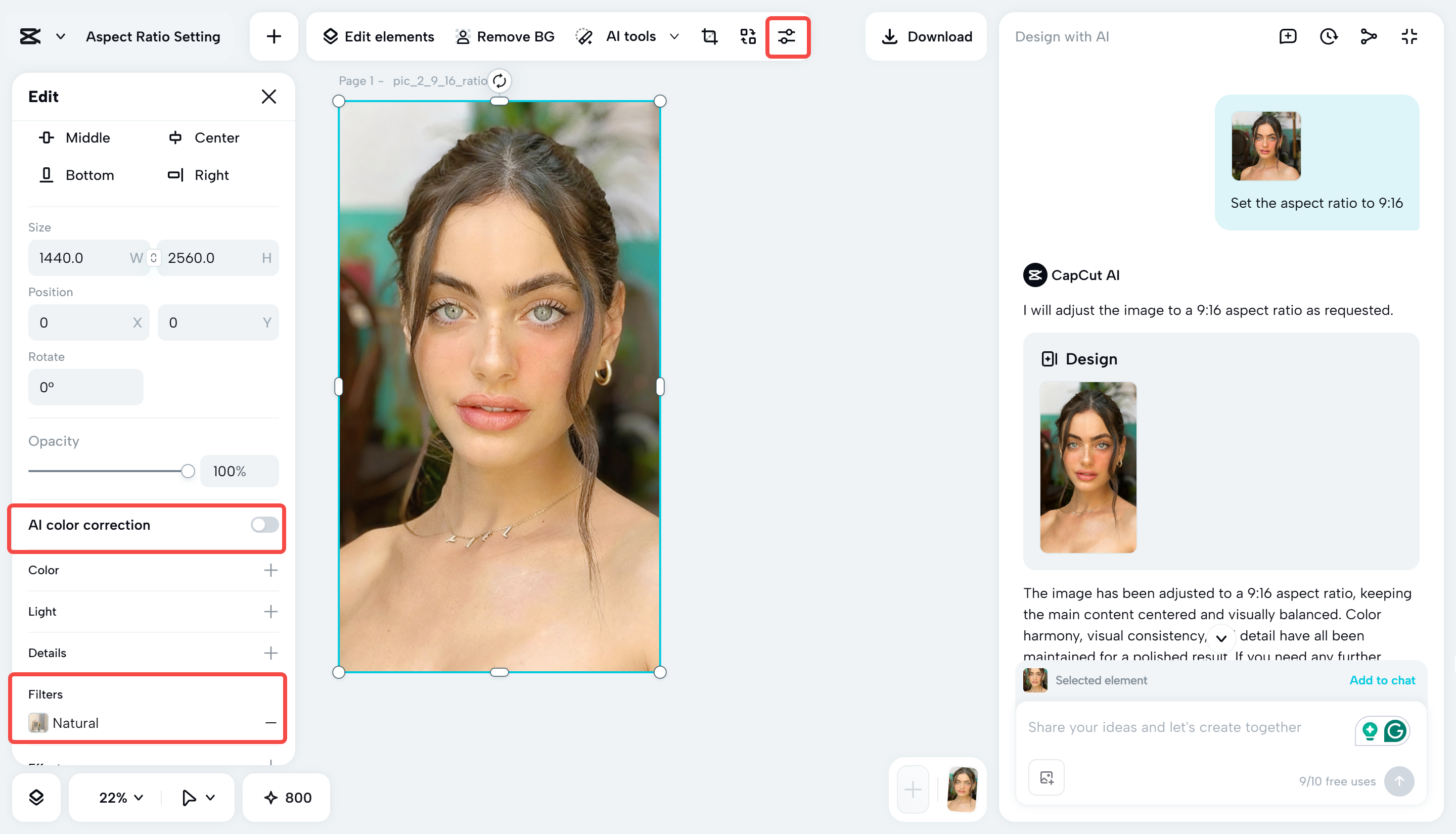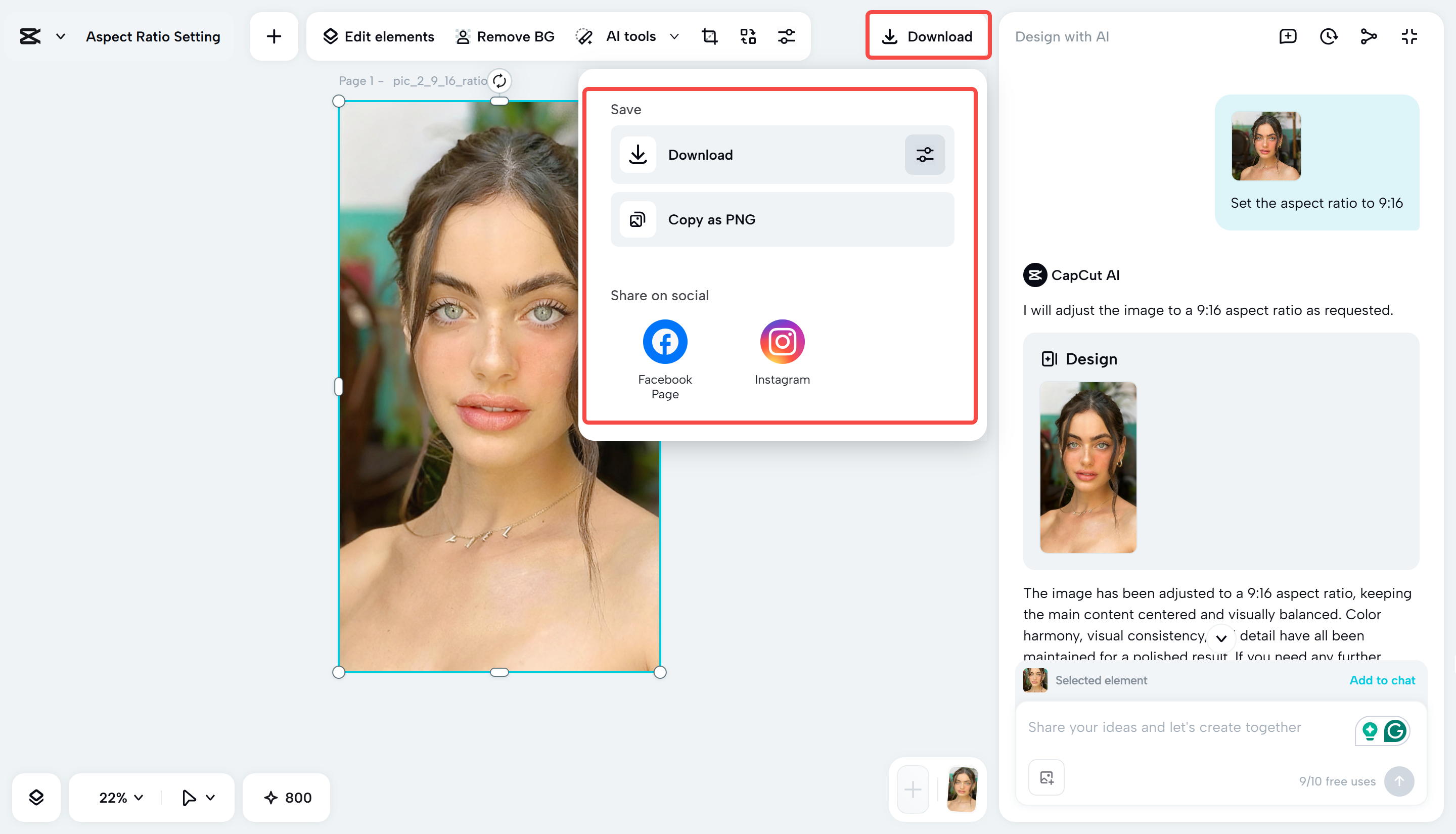 How to crop or edit an image with CapCut's AI design