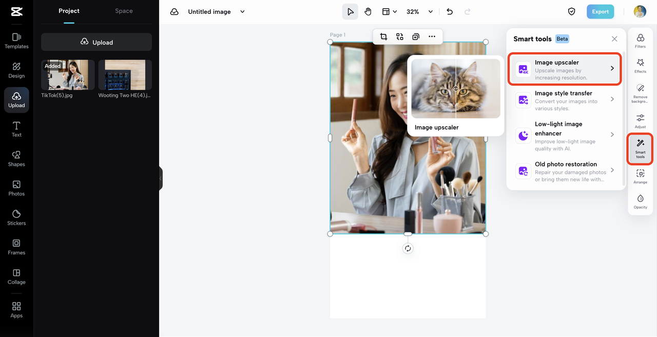 Sometimes, when you JPG compress 15KB, it may get extremely blurry. Enter CapCut's image resolution enhancer. This tool is like a magic wand for your pictures, fixing them to look even better. It's not just about maintaining quality; it's about taking your images a notch higher.