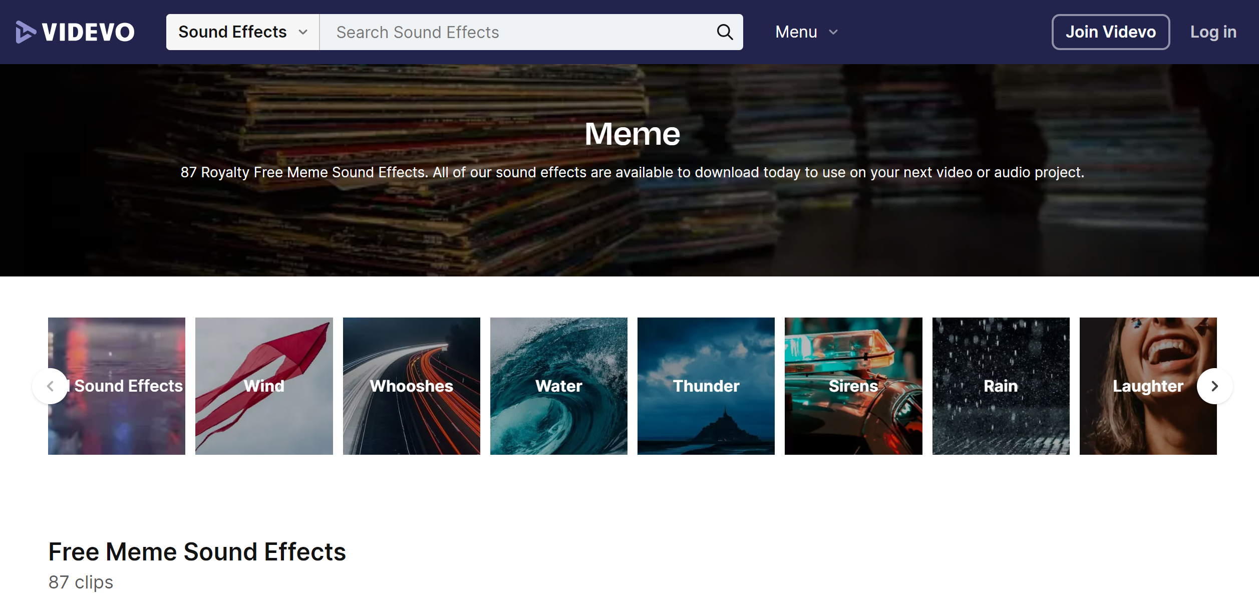 VIDEVO offers a unique blend of free stock video clips and sound effects, making it a valuable resource for meme audio downloads. Its collection supports creators in finding the perfect sound to complement their visual content.
