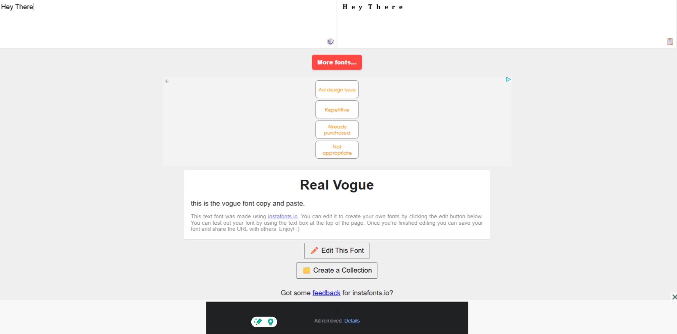 Font Meme is a well-known Vogue font generator that enables users to design stylish text graphics in a matter of moments. It's great for anyone looking to create Vogue logo font styles or even social media posts in a short period. The website has a feature where you can type in your text, and it will be displayed to you in a classy Vogue font instantly.
