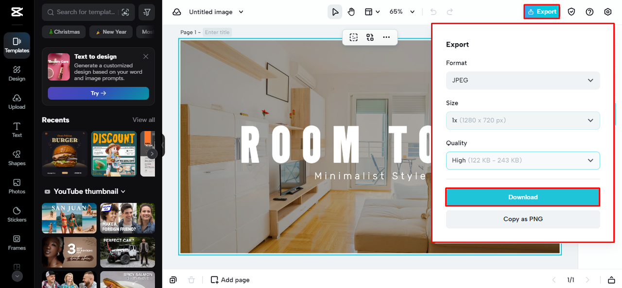Once your custom YouTube banner is ready, export the final design and save it on your device.