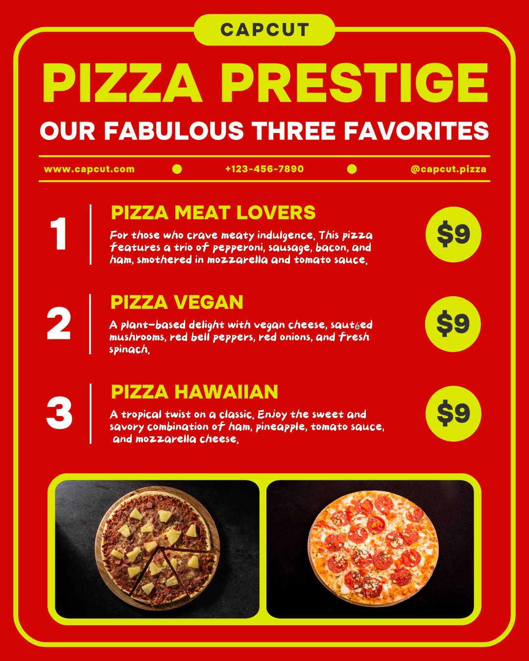 Food Pizza Menu Promotion Instagram Post Red Background with two picture