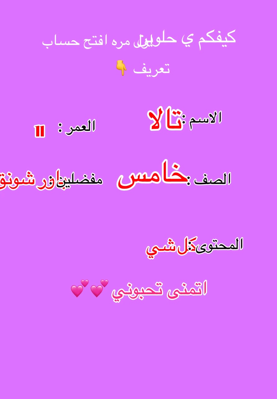 Tala frans🫀😭🤙🏻الاسم : تالا العمر: ١١ الصف: خامس المحتواى: تصاميم نصايح رده فعل ترنقات🫡😩