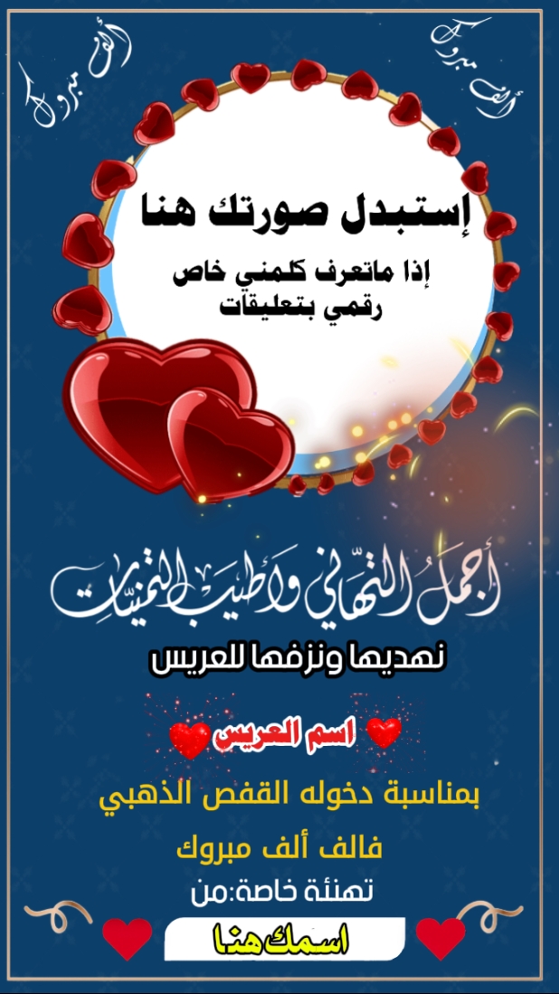 #قالب_تهنئة_زفاف #يمكنك_التعديل #الصوره_اسم_العريس