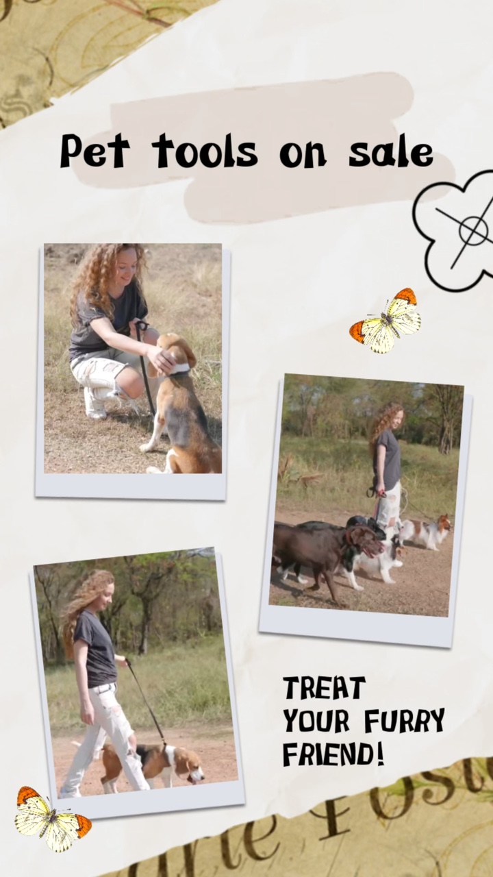 Collage Style, Hair Removal Tools, Trimming Tools, Toiletries, Training Supplies, Feeding Supplies, Cleaning Supplies, Leashes, Product Display.Improve your ad video quality today.