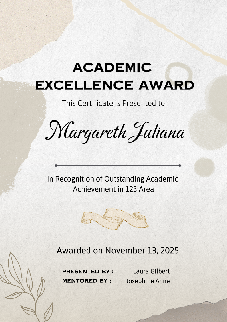 Non-Marketing Award Certificate Brown Aesthetic