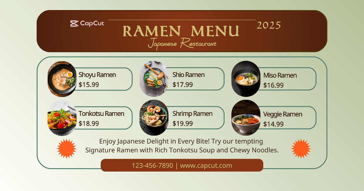 Food & Beverage Ramen Menu Facebook App Ad