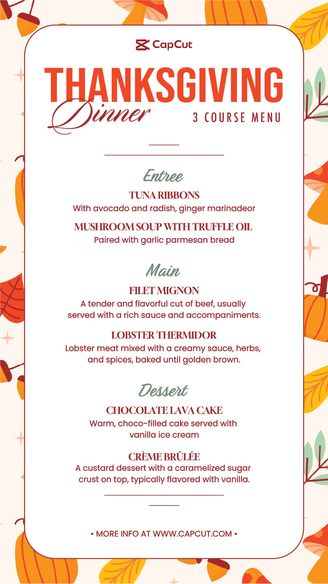 Thanksgiving Dinner Special Meal Course Menu