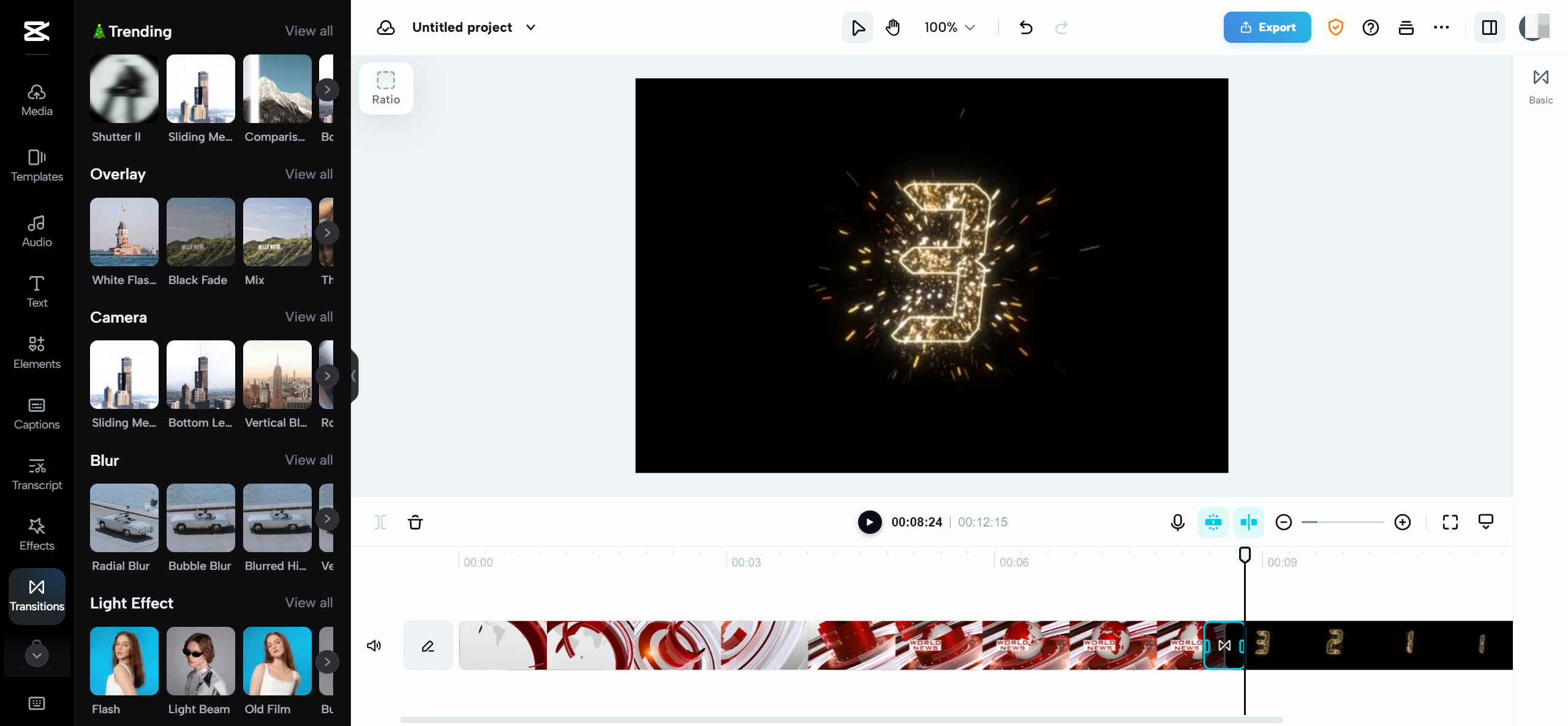 ด้วยโปรแกรมแก้ไขวิดีโอออนไลน์CapCutคุณสามารถผสานวิดีโอได้อย่างง่ายดาย คลิกที่วิดีโอภายในเมนูการแก้ไข สิ่งนี้จะแสดงตัวชี้สีขาวและวงเล็บสองตัวที่ครอบคลุมวิดีโอ ย้ายตัวชี้สีขาวไปยังจุดในเวลาที่คุณต้องการเพิ่มวิดีโอถัดไป จากนั้นคุณสามารถคลิกที่ "การเปลี่ยนผ่าน" เพื่อให้การแยกที่เรียบร้อยจากวิดีโอหนึ่งไปยังอีกวิดีโอหนึ่ง