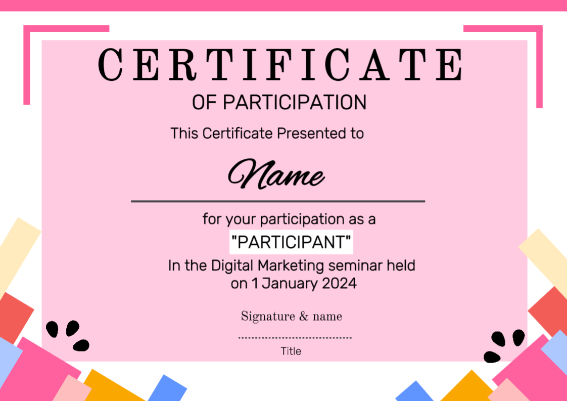 NON-MARKETING CERTIFICATE OF PARTICIPANT COLOURFULL