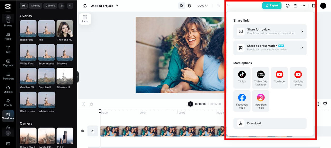 CapCut ay ang pinakamahusay na web-based na app upang gawing malinaw ang malabo na imahe. Maaari mong itaas ang mga larawan sa 4k na resolusyon sa tatlong madaling mga hakbang: Mag-upload, Upscale, at I-export. Bukod dito, maaari mong i-edit ang mga naka-upscall na imahe upang magdagdag ng mga frame, template, disenyo, paglipat, epekto, at mga filter.