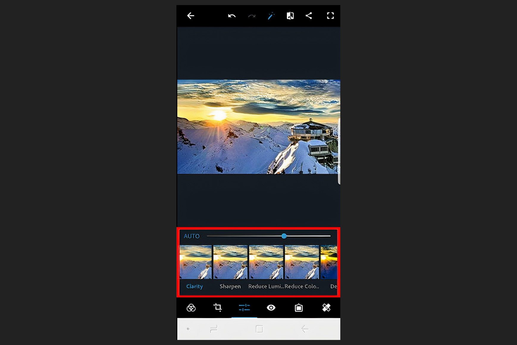 - Maaari mong i-edit ang mga larawan gamit ang madaling pagpipilian ng mga slider.