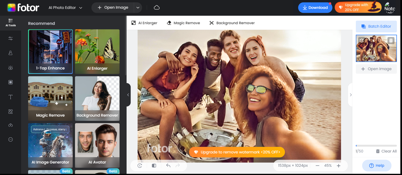 - Nagbibigay-daan ito sa iyo upang i-batch-proseso ang mga larawan at pagbutihin ang kalidad ng imahe para sa 50 mga larawan nang sabay-sabay.