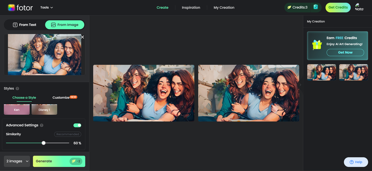 - Виберіть бажаний стиль аніме та виберіть кількість фотографій сімейства аніме, які ви хочете створити. Виберіть між 1-6. Ви також можете налаштувати подібність за допомогою опції розширених налаштувань. Клацніть Створити, щоб продовжити.