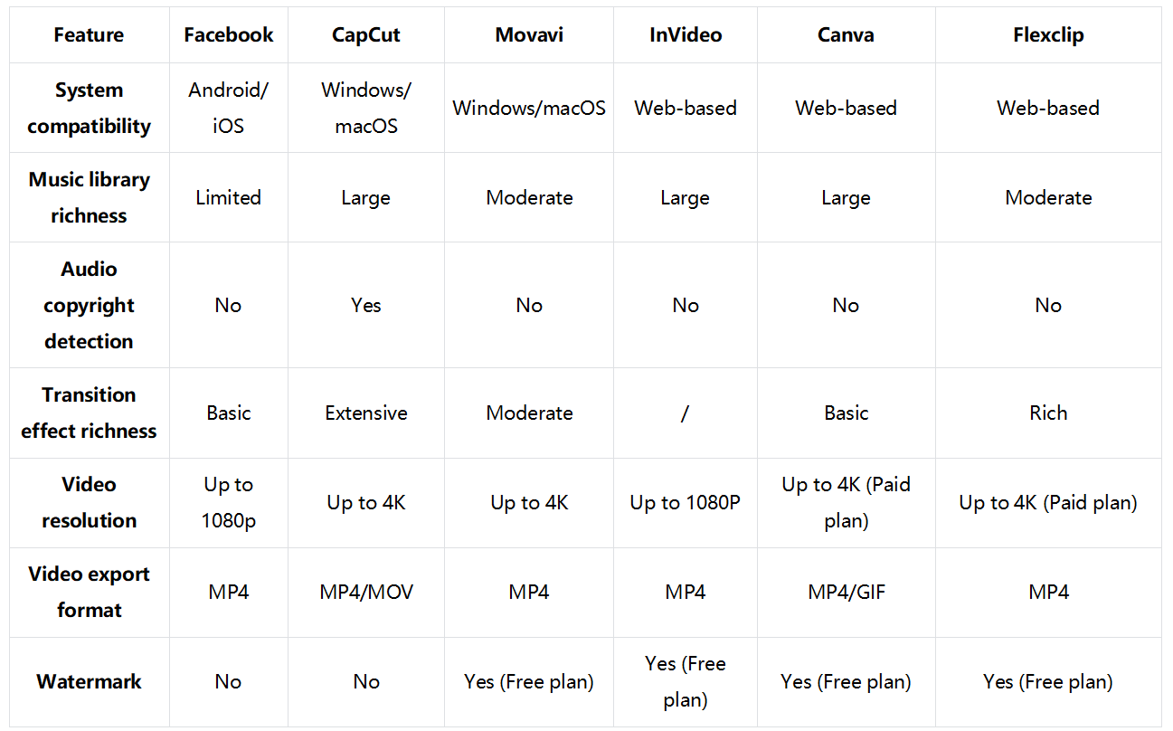 Вбудований виробник слайд-шоу Facebook - це зручний і простий інструмент для створення захоплюючого візуального вмісту безпосередньо на платформі. Це дозволяє користувачам зібрати серію фотографій та коротких відеокліпів у слайд-шоу з плавними переходами та фоновою музикою. Ідеально підходить для особистих публікацій, ділових акцій та основних подій, цей виробник фото-відео на Facebook позбавляє потреби в сторонніх додатках і забезпечує швидке створення та обмін вмістом. Крім того, він абсолютно безкоштовний у використанні, що робить його доступним варіантом для тих, хто хоче посилити свою присутність у соціальних мережах.