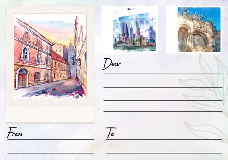 Non-marketing, Postcard, watercolor with three photo collage