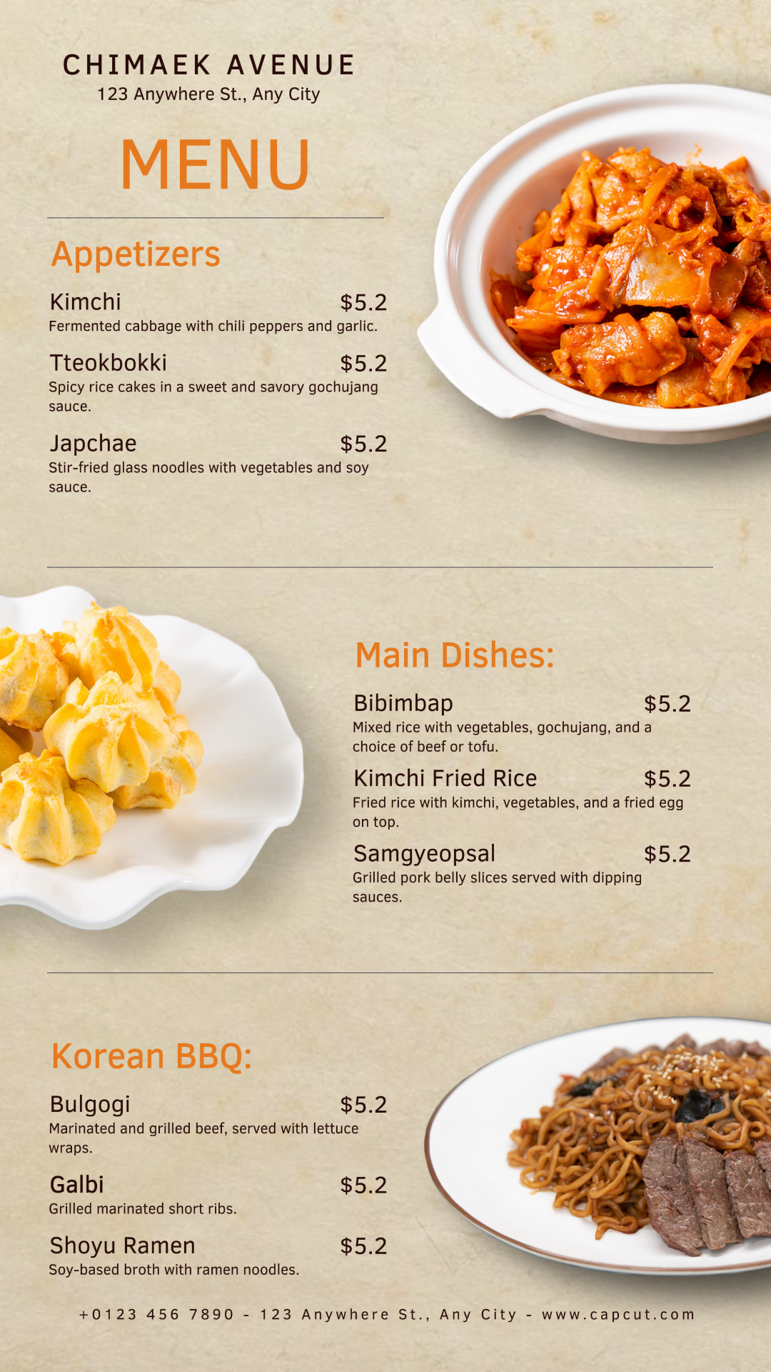 Korean Food Restaurant Menu