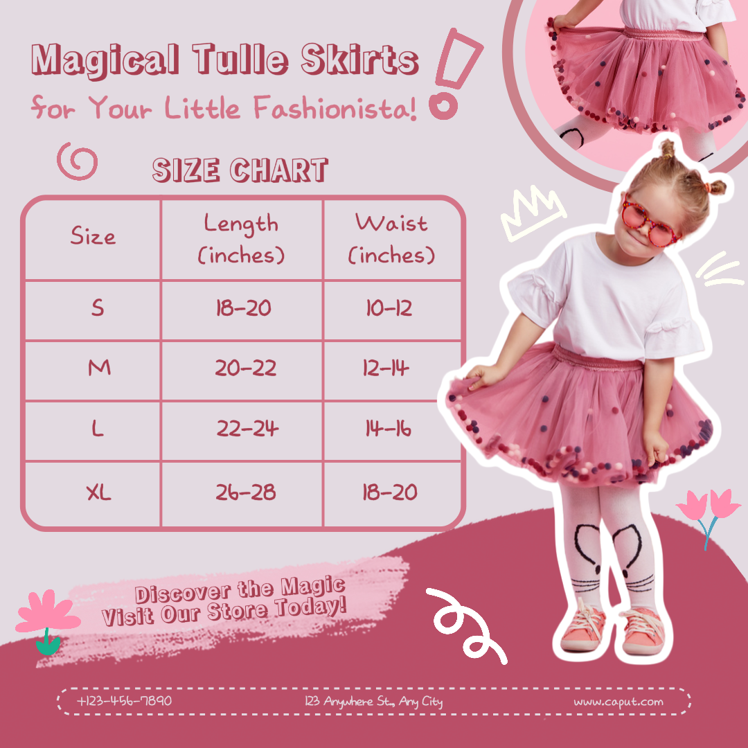 Fashion Kids Skirts Size Chart Product Display